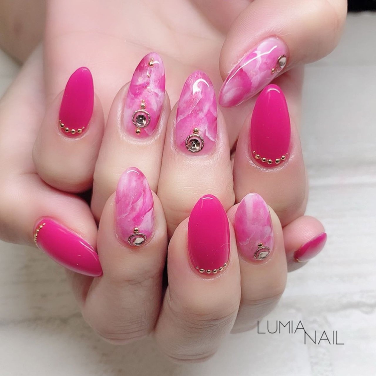 春 ハンド ビジュー ワンカラー マーブル Lumianailのネイルデザイン No ネイルブック